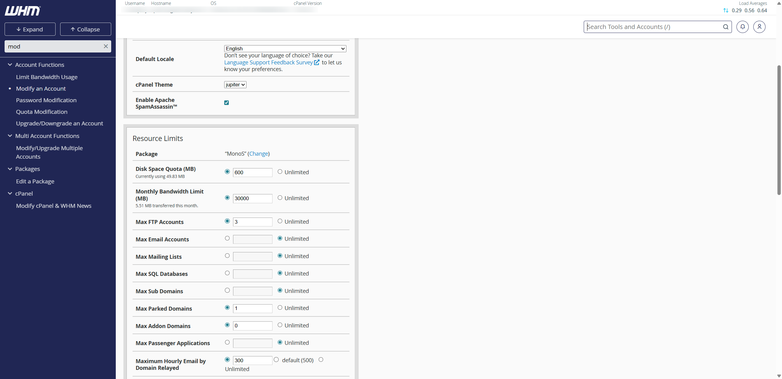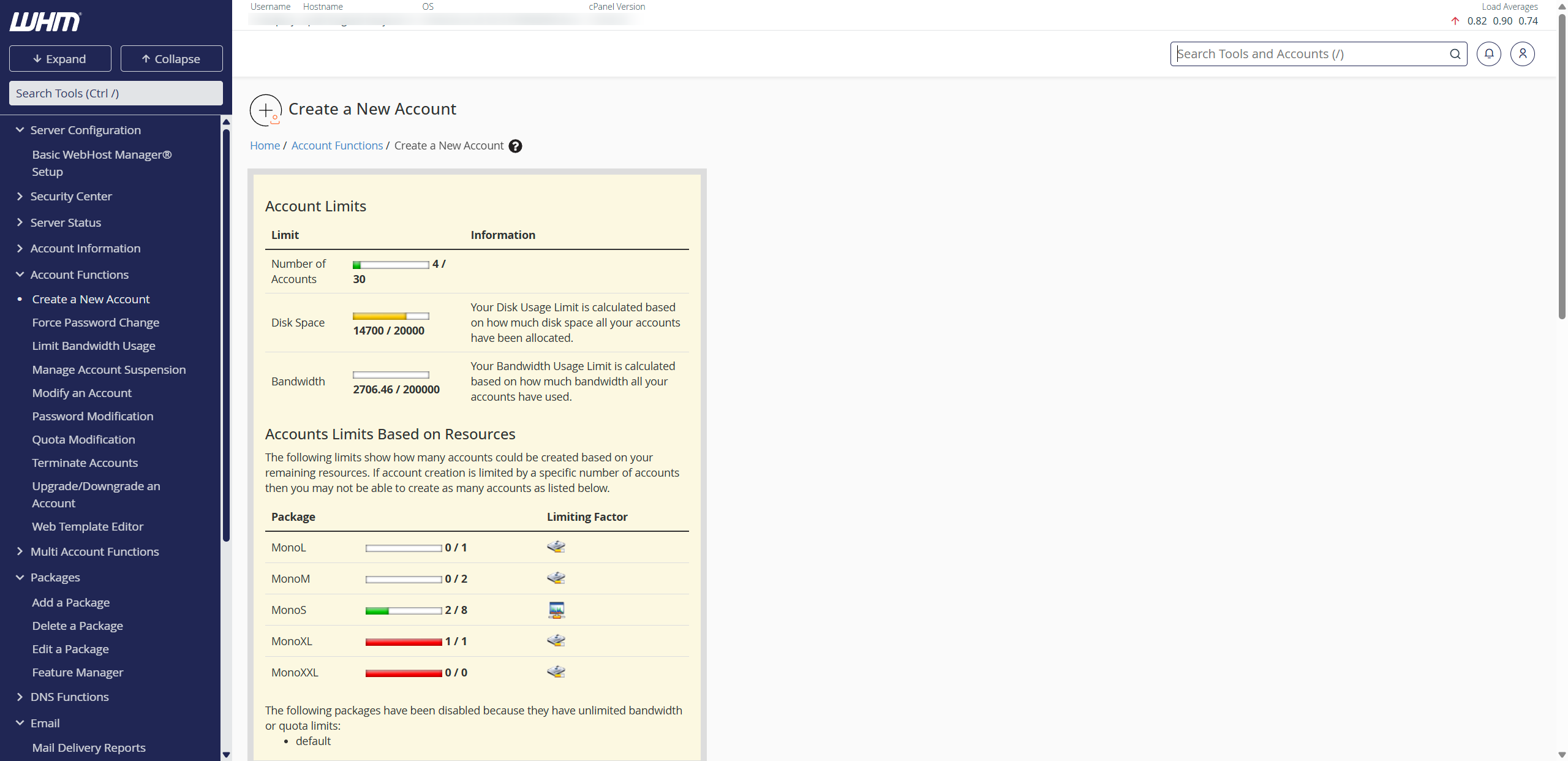 V WHM lahko vnaprej določite pakete, ki vključujejo: